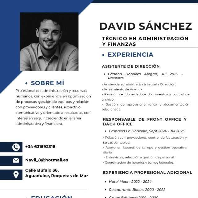 Profesional organizado y responsable, con conocimientos en el área administrativa, manejo de herramientas informáticas y diseño gráfico. Capaz de realizar tareas administrativas, gestionar documentación y apoyar procesos internos, aportando