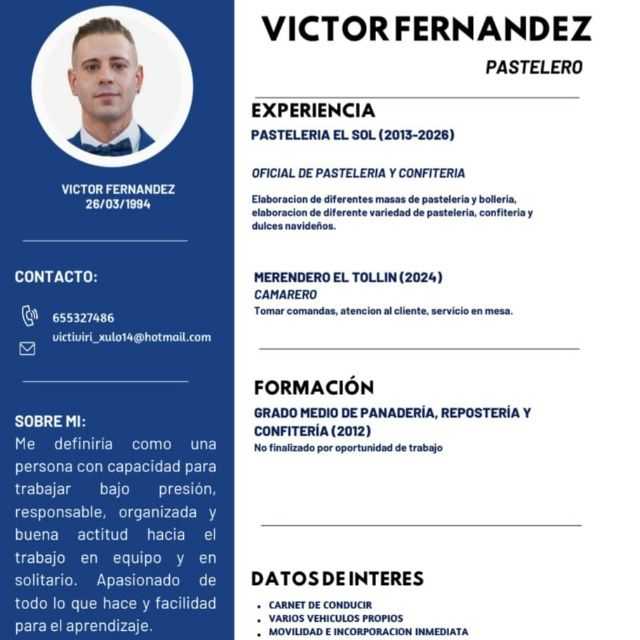 13 años de experiencia oficial pastelero - El sol