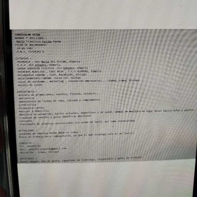 Soy una persona con don de gentes con más de 20 años trabajando al público ,responsable y empática. Buena presencia. Estudios varios con grado superior