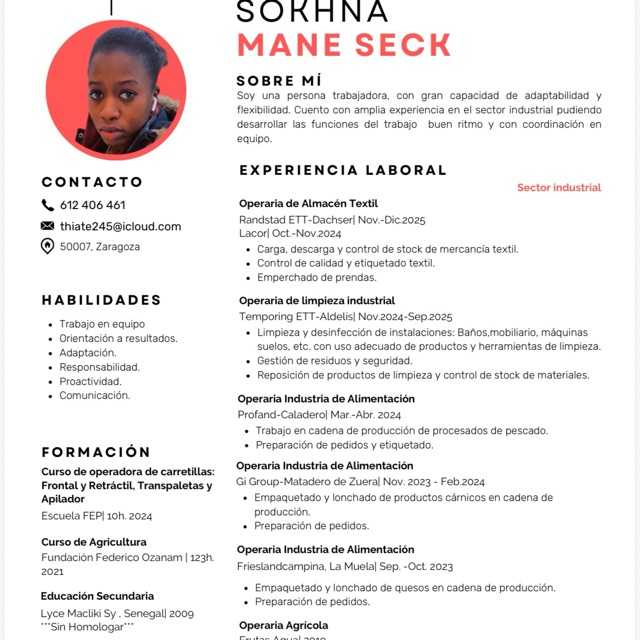 Soy una persona responsable, puntual, proactiva y metódica, que sabe trabajar en equipo y con ganas de aprender y progresar en mi carrera.