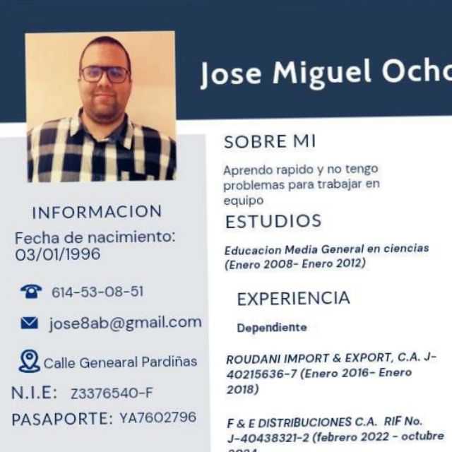Persona con ganas de aprender, responsable, versátil, con capacidad para liderar y trabajar en equipo o de manera independiente.