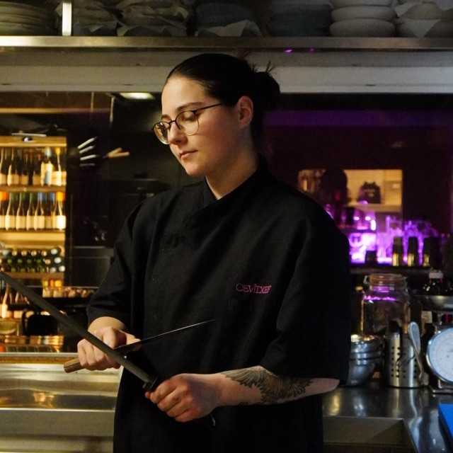 Cocinera en área de entrantes y postres - Restaurante Nectari