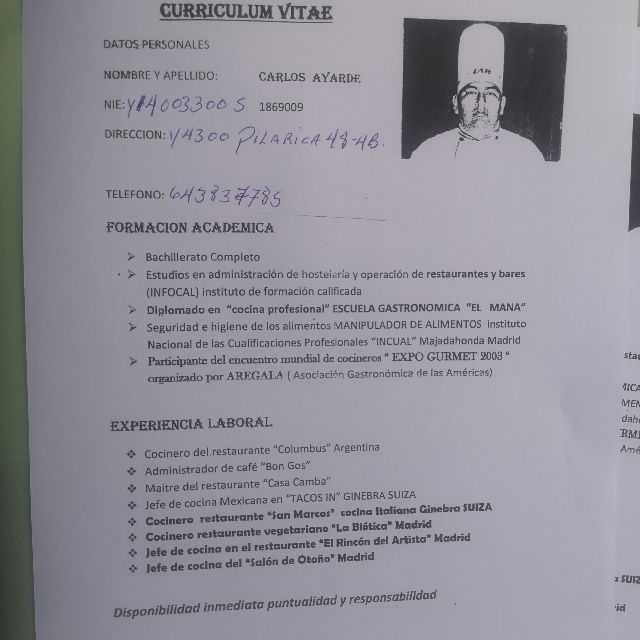 Hola soy cocinero con mucha experiencia y buen carácter me gusta aprender siempre