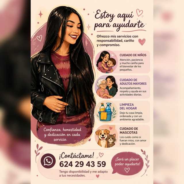 Chica responsable, dinàmica amb facilitat pel tracte amb la gent, bon treball en equip i facilitat d'aprenentatge. Amb iniciativa i comunicativa.