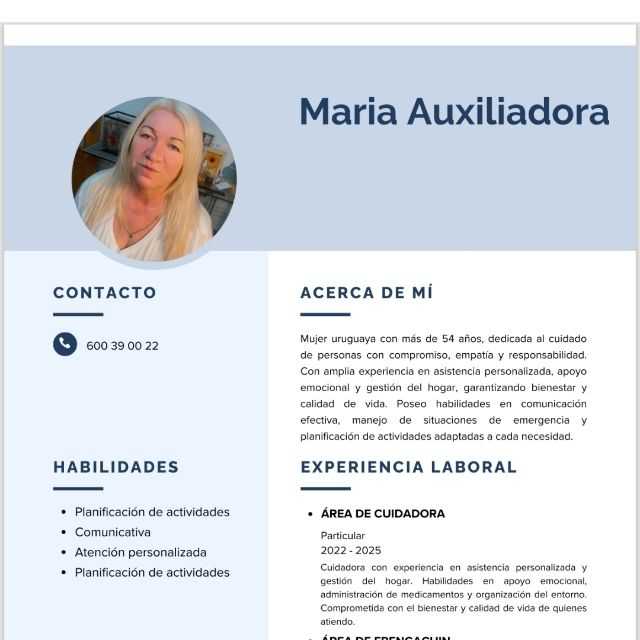 Soy una persona resolutiva, empática, organizada y con capacidad de adaptación. Tengo experiencia en limpieza de casas y locales y ayuda a domicilio con personas mayores y dependientes.