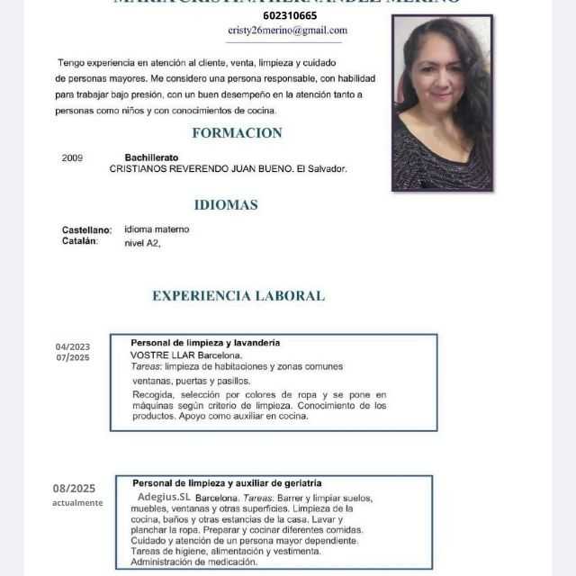 Persona proactiva, responsable y con gran capacidad de adaptación. Busco una oportunidad de media jornada donde aportar mi experiencia en atención al público, tareas administrativas y bienestar. He trabajado en sectores diversos.
