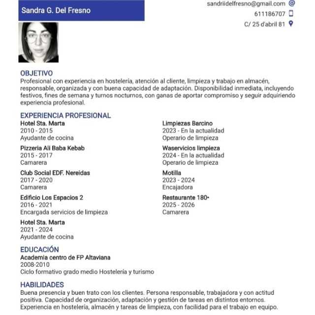Trabajador responsable, puntual y con experiencia en fábricas y hostelería. Me adapto fácilmente a distintos entornos laborales con buena actitud para el trabajo en equipo.