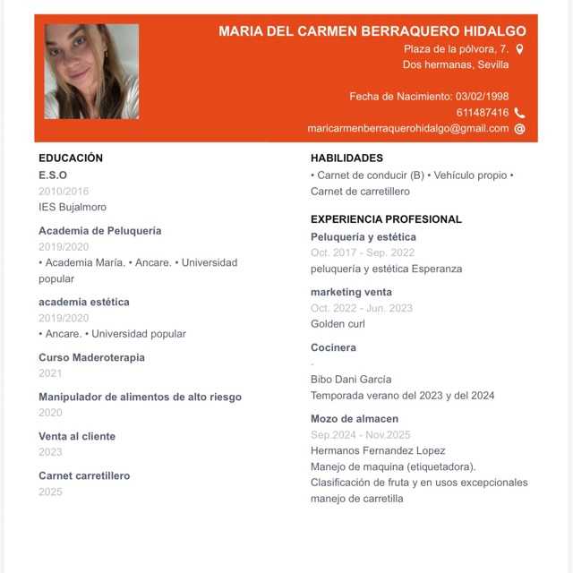Soy una profesional con amplia experiencia en ventas, atención al cliente, marketing digital y gestión administrativa. Destaco por mi capacidad de comunicación.