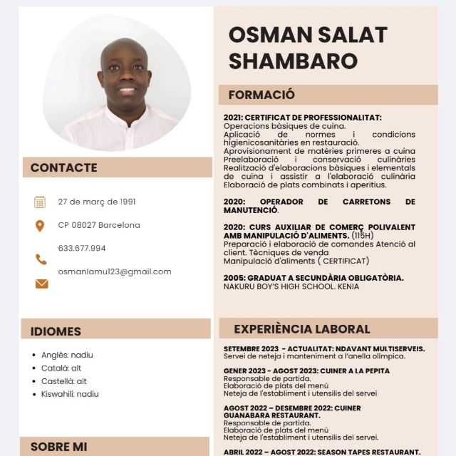 Soy una persona trabajador responsable con calidades para el trabajo equipo y con ampliaexperienciade 5 años en el sectorservicios A nivel profesional busco estabilidady una oportunidad para seguir aprendiendo tanto en el sector Restauració