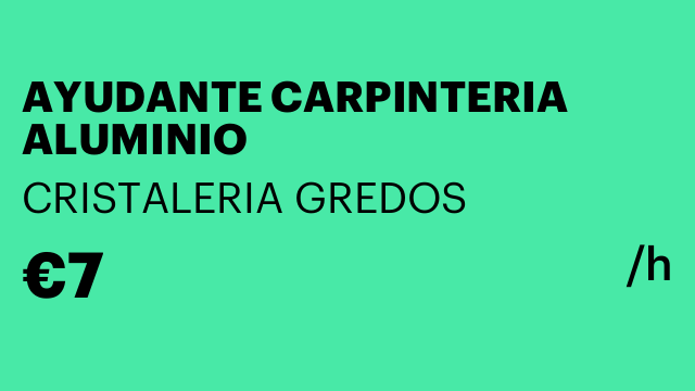 ¡OFERTA DE EMPLEO! Buscamos Oficial 1ª de Aluminio Empresa de Cerramientos y Ventanas en la Comunidad de Madrid está en plena expansión y busca incorporar a su equipo Oficiales de Carpintería Metálica de Aluminio y PVC con ganas de crecer y formar parte de un proyecto a largo plazo para instalaciones en cliente particular. • ¿Qué buscamos?, • Experiencia mínima de 3 años en construcción, sellados y manejo de herramientas., • Capacidad de trabajo en equipo y buena predisposición para aprender., • Experiencia en instalación de pérgolas bioclimáticas, cortinas de cristal, techos fijos/móviles y ventanas de aluminio y PVC., • Se valora experiencia adicional, capacidad de liderazgo, entendimiento de planos y gestión de obras., • Ofrecemos:, • Contrato a jornada completa con salario bruto estimado de 25.000 a 30.000 €/año en función de experiencia y capacidades, con aumento según se demuestre capacidades., • Ambiente de trabajo joven y agradable en una empresa en constante crecimiento., • Formación continua y oportunidades de promoción interna., • Posibilidad de vehículo de empresa., • Requisitos imprescindibles:, • Experiencia previa demostrable y carnet de conducir en regla., • Documentación legal en España. Únete a un equipo que está transformando espacios en la Comunidad de Madrid. Abstenerse candidatos sin experiencia o sin papeles en regla.