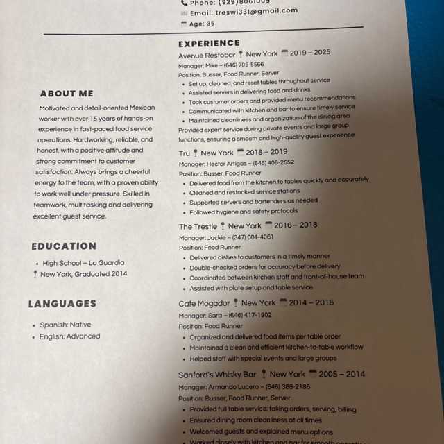 6 años de experiencia en buffets partys restaurantes hoteles mucha experiencia y ganas de trabajar y responsable